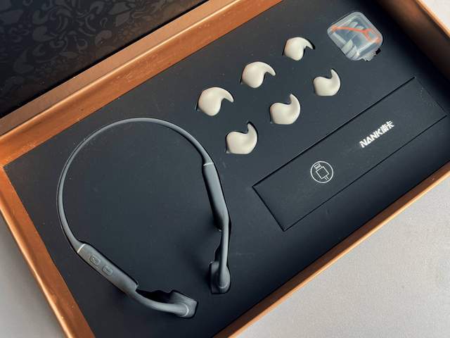 南卡Runner Pro4的包装盒采用了翻盖式设计,在配件上,Runner Pro4和前代有了较大的升级,除了降噪耳塞,还多了三对音质增强器,音质增强器可以有效弥补骨传导音质不如其他耳机的空缺。