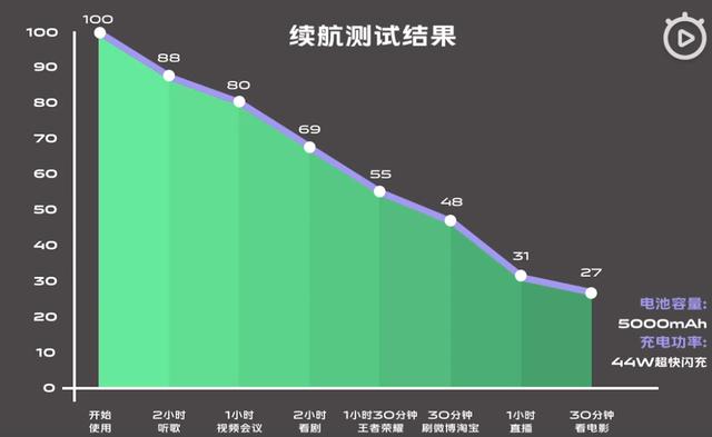 vivo Z6搭载了5000mAh超大电池,电池容量在如今的机型中名列前茅。当然,仅仅只是电池容量大远远不够,还需要更优秀的省电算法等软件层面的加持,而最能体现续航能力的方式无疑是进行实际使用测试。在实际测试中,使用vivo Z6先后进行了听歌、看剧、游戏等测试项目,总共用时八个半小时,这算是宅家情况下较高强度的使用情况了。即便如此,vivo Z6测试完后仍旧剩余27%的电量,续航能力足以坚持一天的使用,甚至可以在轻度使用下完成两天一充的使命,续航能力简直太强了,甚至可以“暴打”不少旗舰手机,很适合对续航有刚需的人群。