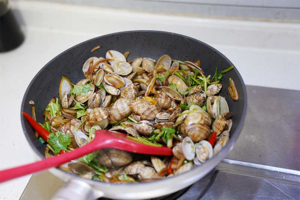 我看到宣传页面中关于炒菜时的介绍,无惧贝壳类的食材烹饪,我是个较真又不信邪的人,直接买来了二斤花蚬子,烹饪的过程中没有发现贝壳类对锅内材料的任何划伤。