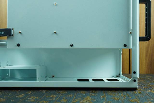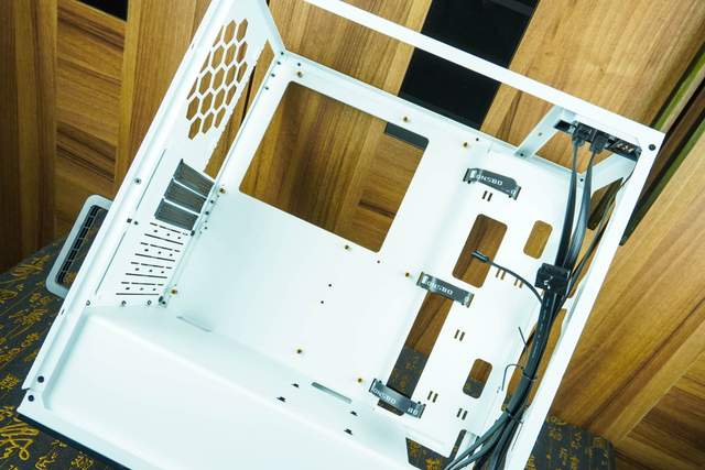 电源仓预留相对充足,200mm尺寸内任意驰骋,千瓦电源也不叫事;结合四周超级孔洞,其实是为中高端配置铺好了后路的。