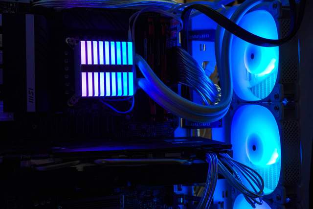 水冷和风扇都支持与主板神光同步,通过主板软件控制,选择喜欢的灯光颜色。