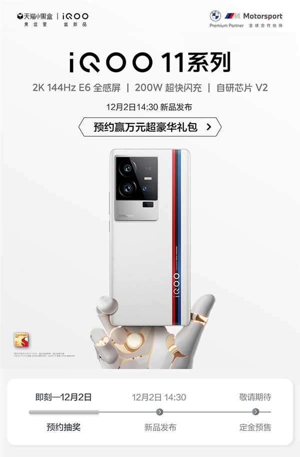 今日消息,iQOO宣布将于12月2日发布iQOO 11系列新品。本次发布会,快科技全程视频直播,敬请关注。