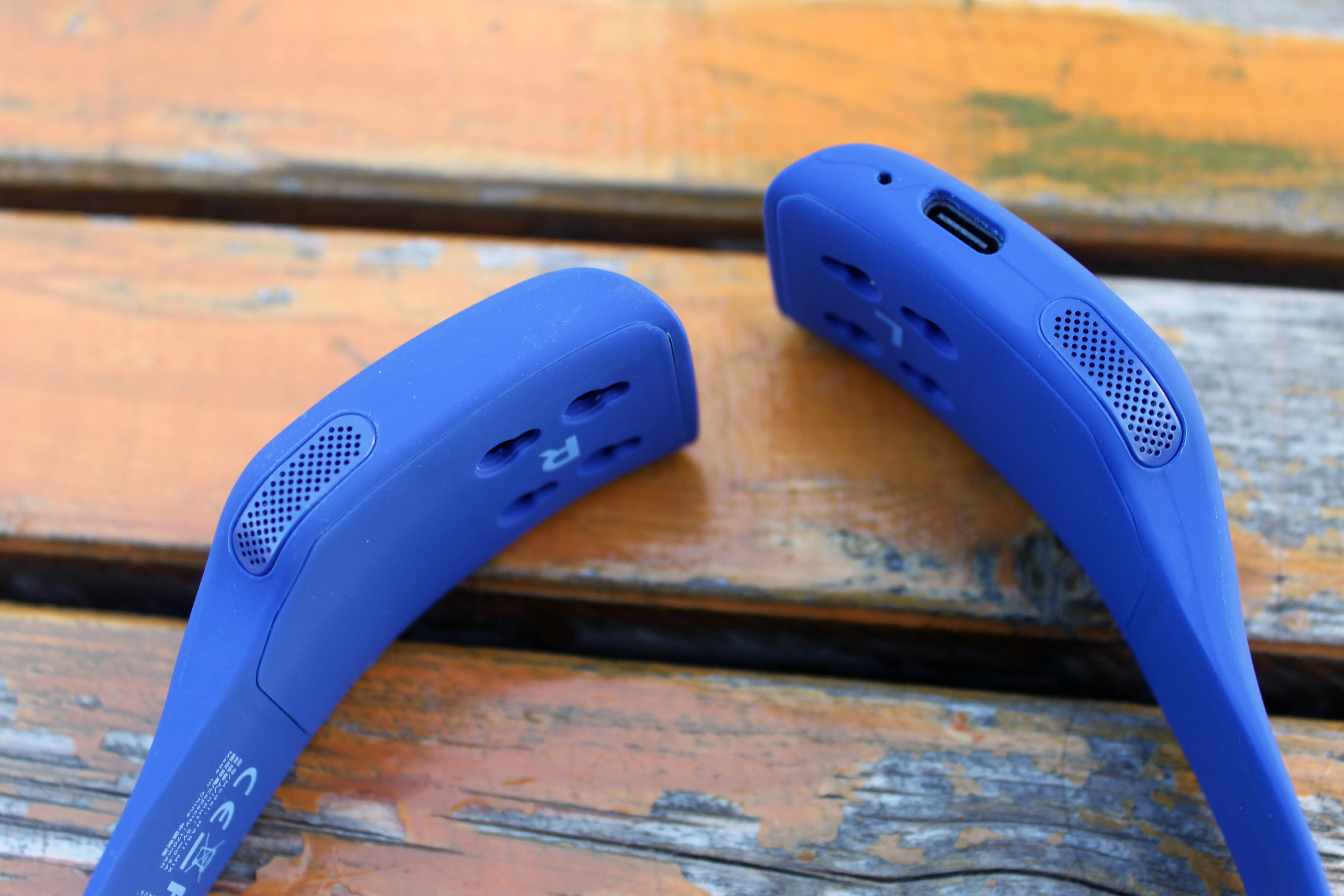 我入手的是蓝色款,产品还有黑色款可供选择。耳机主体采用了抗过敏液态硅胶材质,佩戴时与肌肤接触感更佳舒服。耳机主体采用了一体化设计,设计简洁轻便,整体也只有90g的重量,让佩戴无负重感。