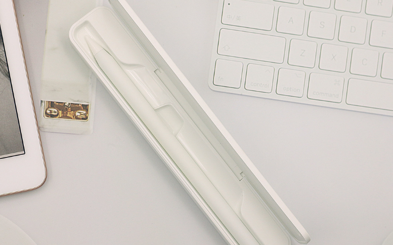 ESR亿色系列电容笔,设计成D型,置于桌上,不易翻滚,表面十分光滑,与IPAD的磁性吸附紧密结合,使用起来十分方便。本系统安全可靠,符合使用者的使用需求。这种小巧的电容笔重量只有15.6克,非常轻便。电容笔有四个小灯泡,用来表示其能量。电池充满电后,可以持续十个小时,十分钟不使用之后,就会自动关机。