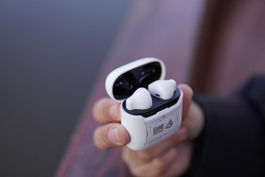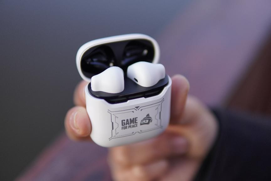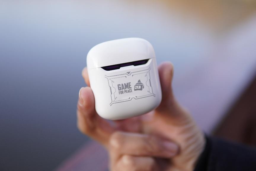 充电盒是和平精英光子鸡的头盔,再加上平精英元素的涂鸦,很有科技感的同时,也有着满满的游戏情怀,吃鸡党估计都会喜欢这个设计。