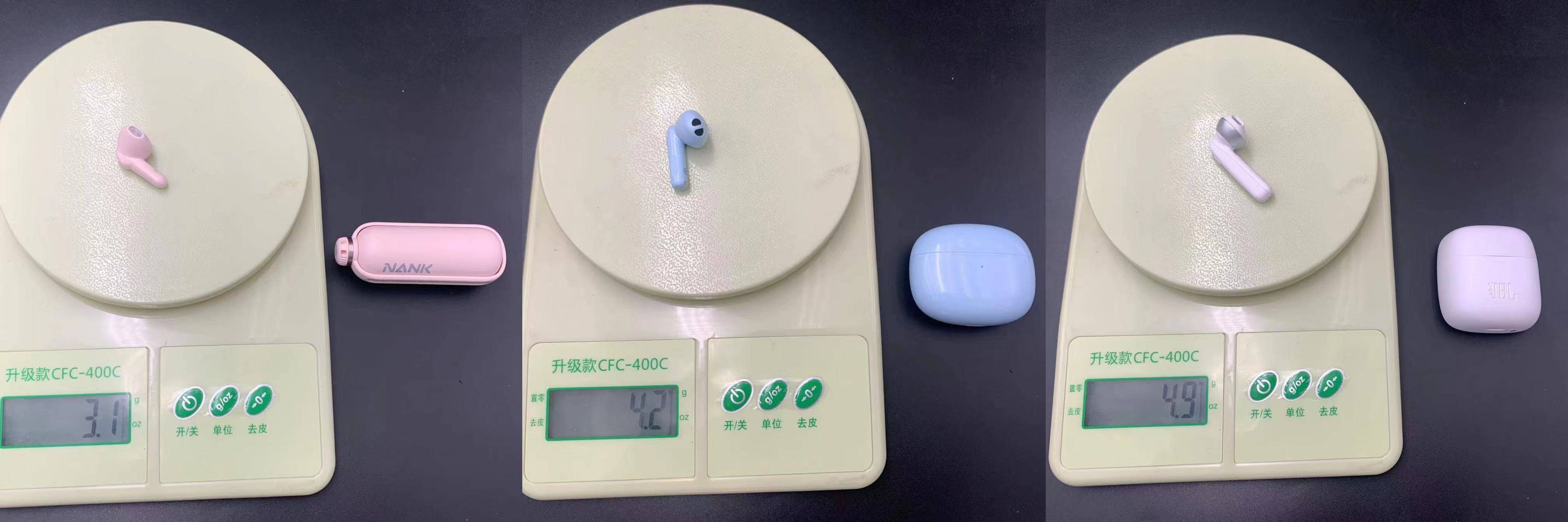 而三款耳机的重量也各不相同,南卡小音舱蓝牙耳机含充电盒的重量为30g,单个耳机仅重3.1g,漫步者Lolli3虽然看上去小巧,但整体重量为41.4g,单个耳机重量为4.2g,JBL TUNE225TWS耳机盒重量为57g,单个耳机重量为4.9g,从重量的角度出发的话,南卡小音舱是最轻的,羽毛重感佩戴舒适,喜欢轻巧的选择这款准没错了。