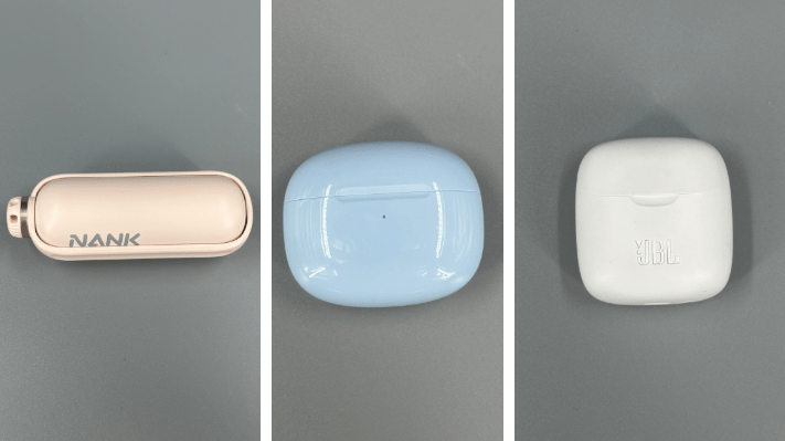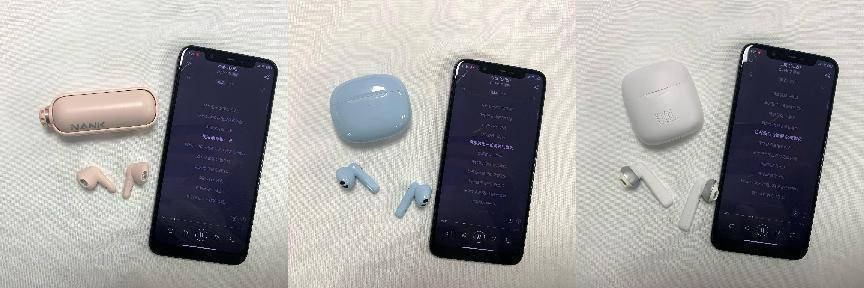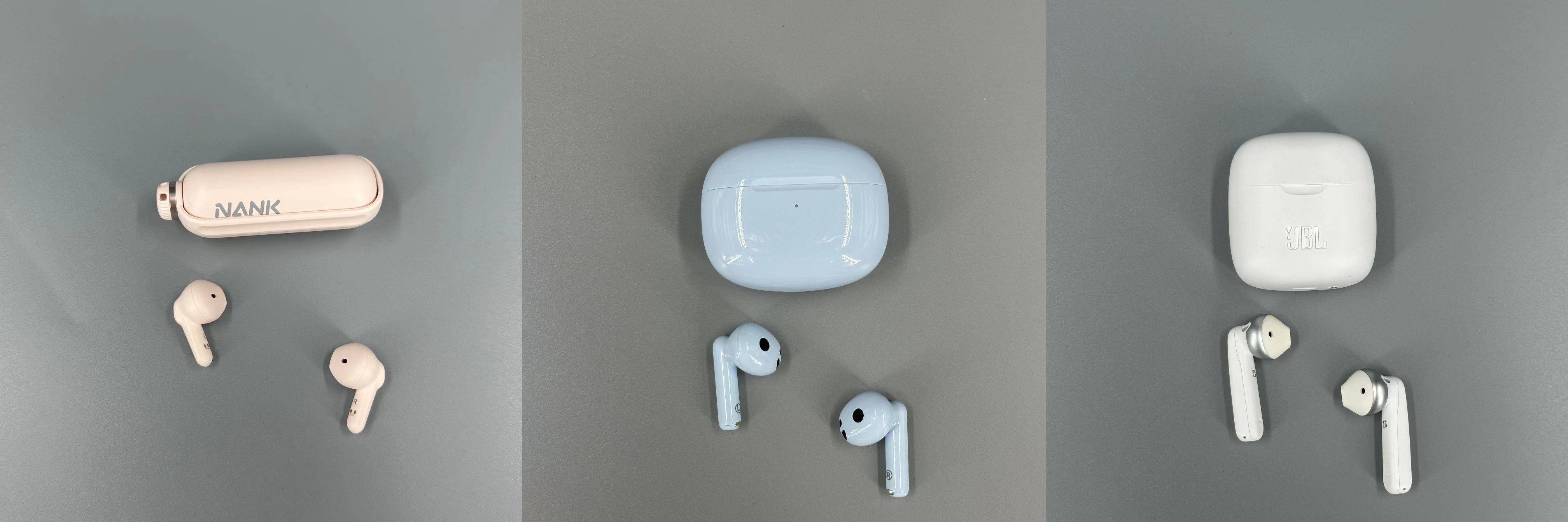 从左向右依次:南卡小音舱、漫步者Lolli3、JBL TUNE225TWS