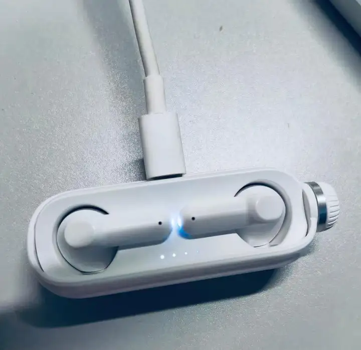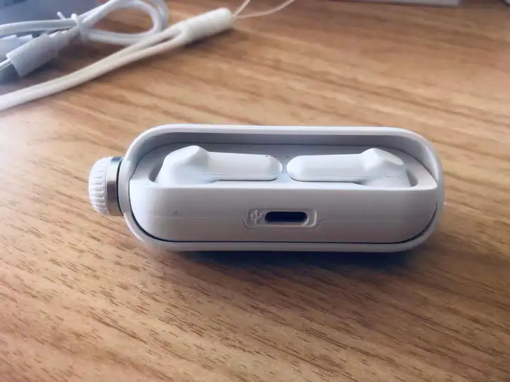 打开后是耳机和舱体。随机附送的一根type-c的一根充电线以及一本产品使用说明书。