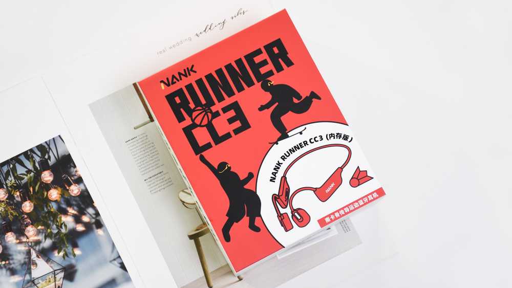 南卡Runner CC 3有红黑两种配色,对应的包装盒颜色也不同。CC系列主打的是年轻定位,包装盒的设计风格也比较时尚,正面是运动风的漫画涂鸦,两个运动员的都佩戴着这款耳机。