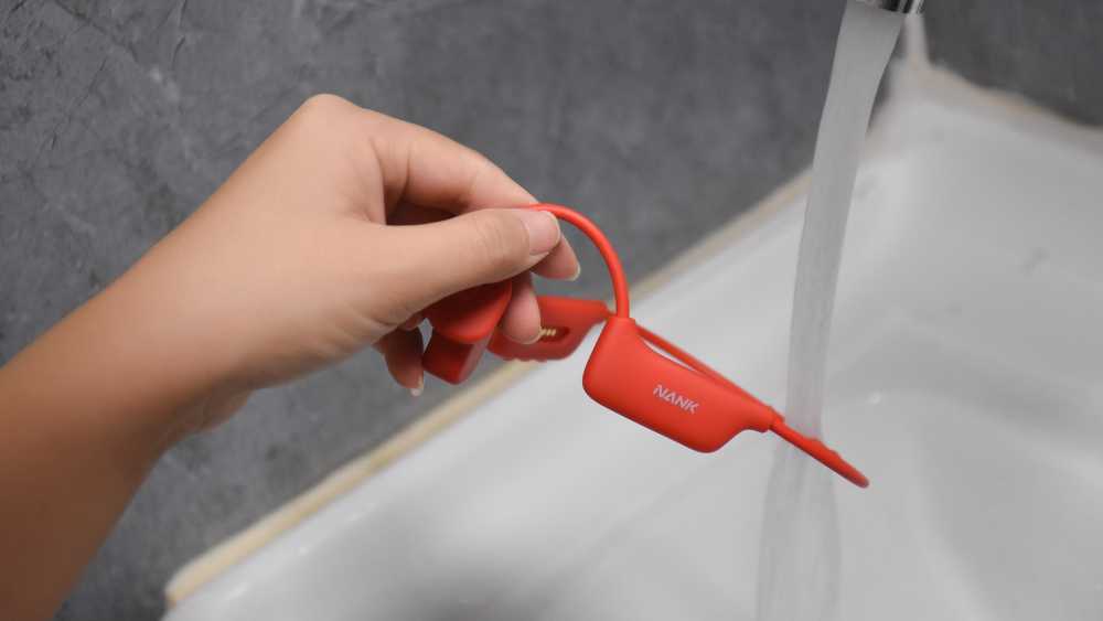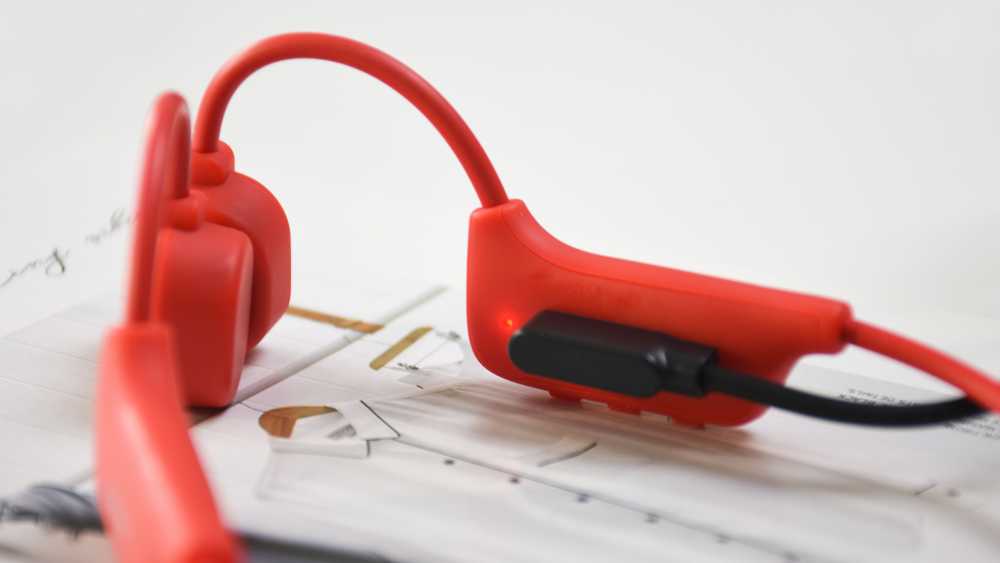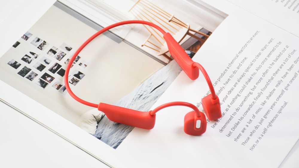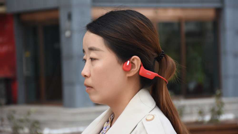 耳机的整体形态和多数骨传导耳机大体相似,只是在一些细节上有所区别,相比Runner Pro系列来说更纤细苗条,显得比较时尚,机身重量也更轻。我选的红色款比较喜庆,外面是一层大红色的硅胶涂层,触感细腻温润,与皮肤接触也很舒适,尤其是冬天佩戴不会有明显的冰冷感。