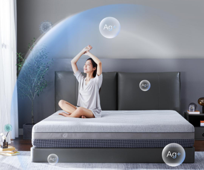 除此之外,这款床垫的表面还添加了银离子抗菌功能,保持表面柔和细腻手感的前提下,增加了生态抗菌纤维,对金黄色葡萄球菌的抑菌率高达96%,对大肠杆菌的抑菌率高达90%,对白色念珠菌的抑菌率高达86%,给你健康的睡眠环境。