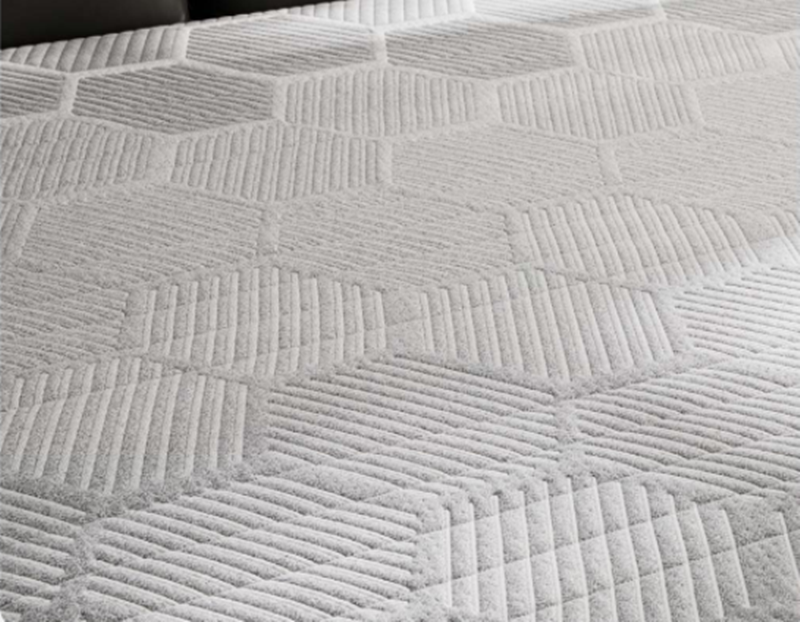 别看它是一个床垫,其实简单的细节上也充满了设计感,例如这个独特的六边形花纹设计,是专门要求的日本设计师,利用来自蜂巢的灵感,赋予床垫天然的大自然体验和感受,非常精致!