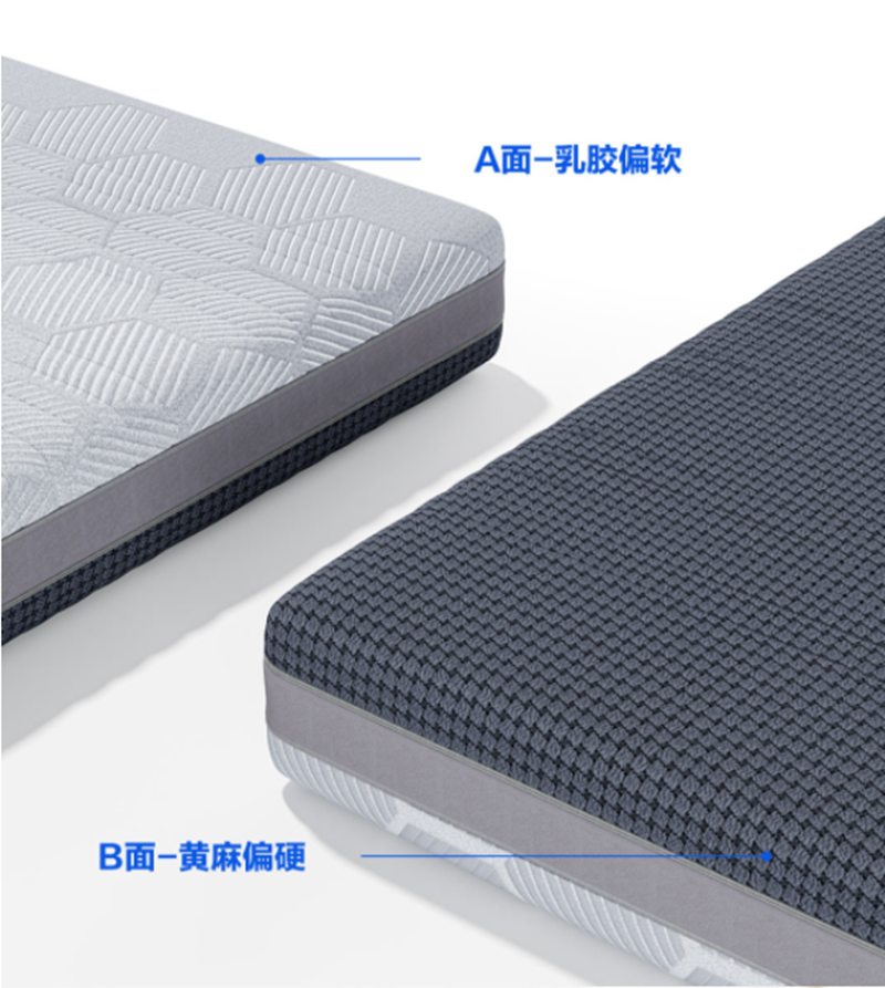床垫采用AB面设计,一面是上面的偏软乳胶,另一面是偏硬黄麻材质,采用孟加拉恒河产天然黄麻,利用较长的植物纤维产生天然的弹性,可以提供强大的支撑力,同时植物纤维都是中空微孔,可以有效地透气排湿,提供舒适的睡眠环境。