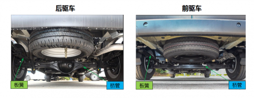 后驱轻客之所以载重能力强,关键点在后桥,后桥就是底盘后面的那根桥。由于前驱轻客的转向和驱动都是由前轮搞定,所以前驱轻客的后桥只是“随动桥”,不用担负太大责任的它也就比较细了。