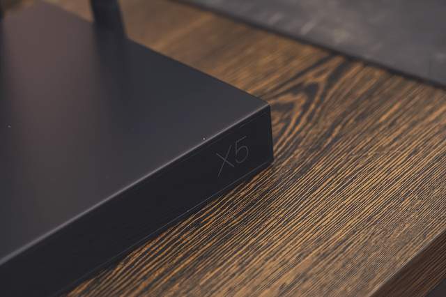 蒲公英X5机身前面是一块亮面的亚克力板,其中右侧是“X5”,代表产品的型号标识。左侧则是一枚LED指示灯,用于指示不同的工作状态——灯未亮(路由器未通电/故障)、绿灯闪烁(系统启动中)、红灯闪烁(正在连接互联网/联网失败/路由器重置)、绿灯常亮(已连接互联网,但路由器未组网)、蓝灯闪烁(路由器正在组网/组网异常)、蓝灯常亮(一切正常)。