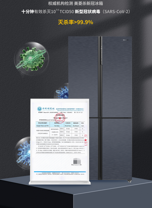 美菱杀新冠冰箱是在经过了多轮实验,并获得权威认证的前提下进行公开发布。据北京中析研究所权威认证数据显示,美菱杀新冠冰箱内置的灭毒装置,针对冷藏/冷冻箱物体表面的105.6TCID50新型冠状病毒(SARS-CoV-2),10分钟内灭杀率达到99.9%。