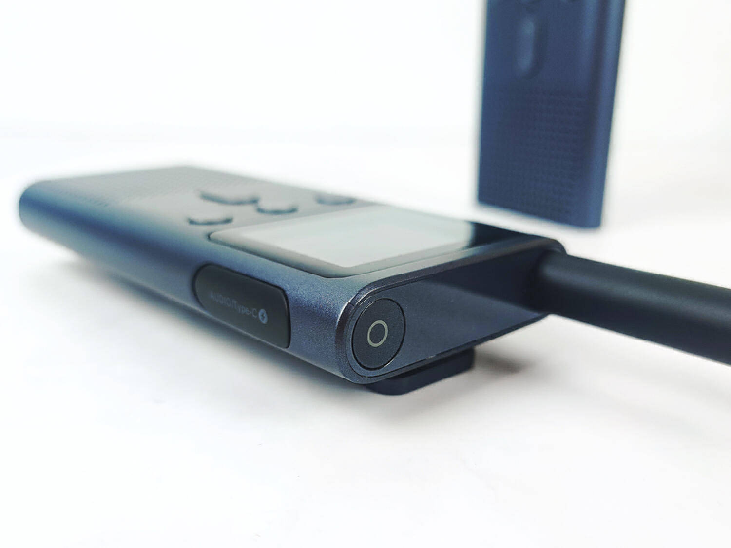 对讲机左侧是对讲按键、音量调节按键,右侧是充电接口、3.5mm耳机孔,顶部是电源键。对讲键采用的是长键程PTT按键设计,盲操作无压力;另外在音量加键上设有圆点凸起,同样可盲操作;电源键放在顶部,我这段时间用下来几乎无误触情况,必须赞一个!
