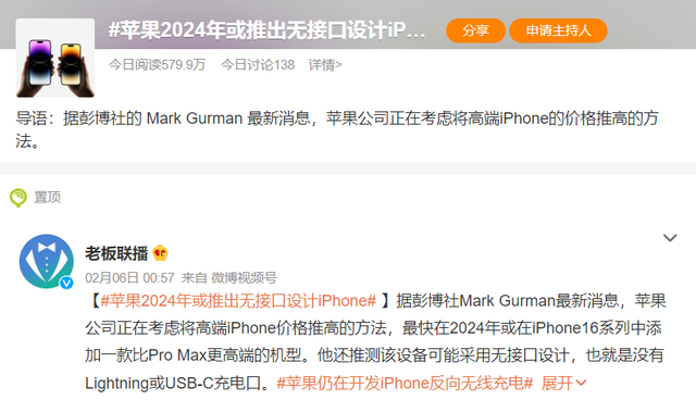 当然,消息是否属实还是要等到产品发布的时候才能知晓,如果真的采用了无接口设计,我觉得苹果公司不会放弃涨价的好机会。对此大家怎么看?欢迎在评论区留言讨论。