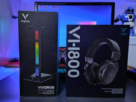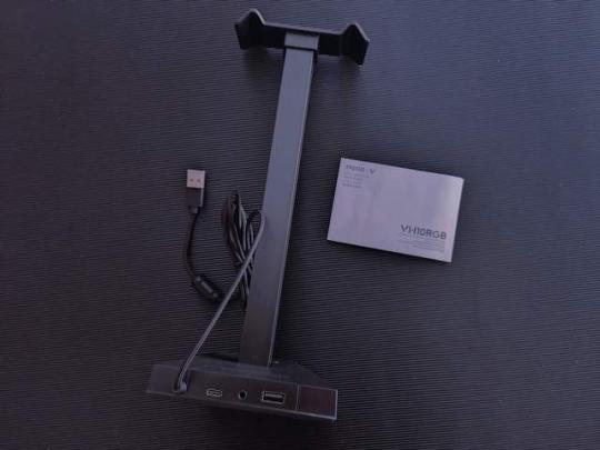我这次入手的不仅仅是雷柏VH800双模无线游戏耳机,还一起入手了非常炫酷的雷柏VH10 RGB拾音幻彩耳机支架。