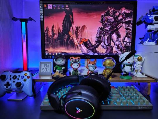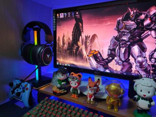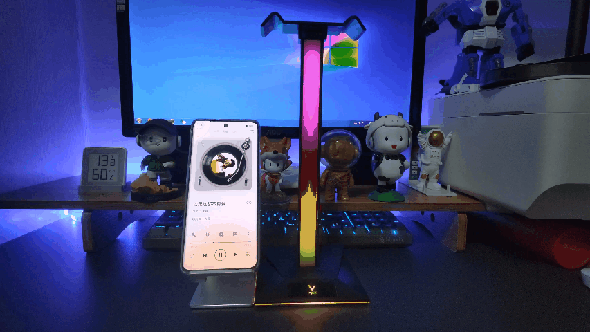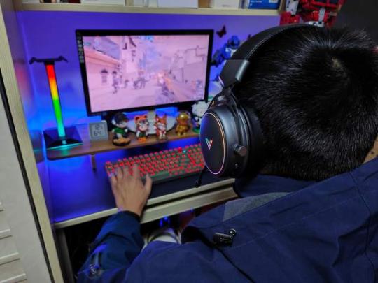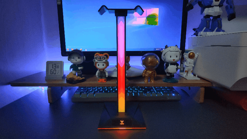雷柏VH800双模无线游戏耳机和雷柏VH10 RGB拾音幻彩耳机支架所呈现出的炫酷灯光效果非常完美,除了日常游戏使用以外,作为桌搭装饰使用,也是一个不错的选择。特别是RGB的拾音灯效,营造出游戏氛围感十足电竞桌搭场景。