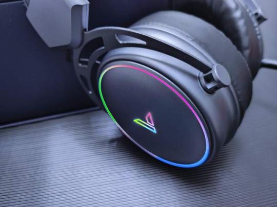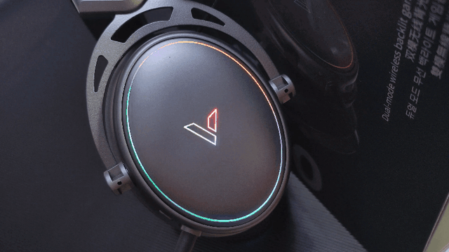 雷柏VH800双模无线游戏耳机的耳壳带有环状RGB灯带,中间为雷柏品牌LOGO,使得这款耳机具有极其浓郁的专属电竞色彩,可以完美营造出沉浸式的游戏氛围。