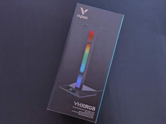 耳机支架仍采用简洁包装设计,拒绝花里胡哨,左上角为雷柏的品牌LOGO,与一般的普通耳机支架不同,雷柏这款耳机支架除了日常放置耳机,还具有炫酷的RGB灯效。