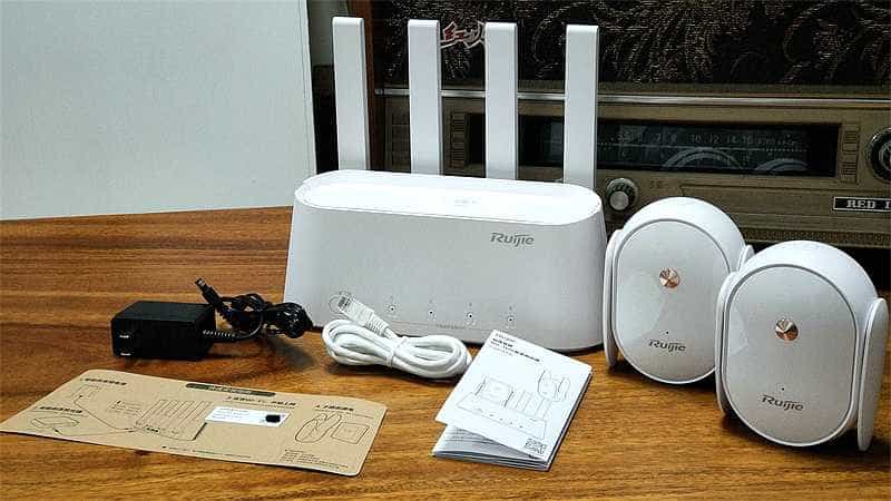 锐捷作为一家主营网络设备的企业,不仅在硬件上有着良好的口碑,在产品颜值上也不落下风。通过配件可以看到:一台四天线主路由、两台扩展路由、电源适配器、一条网线、说明书、一张包含快速入门设置的牛皮纸片。
