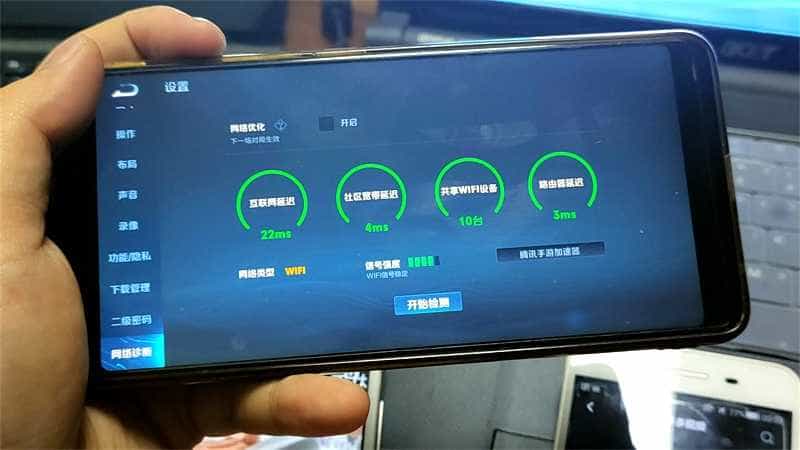 通过王者荣耀的游戏诊断工具可以了解到,在10台联网设备的共同使用的情况,依旧能够很好的将互联网连接响应控制在22ms的优质状态,并且在游戏过程中游戏的延迟也都能很好的控制在30ms-50ms之间,分压状态下的锐捷蜂鸟路由器无论在哪个节点下游戏都能获得非常流畅的体验。