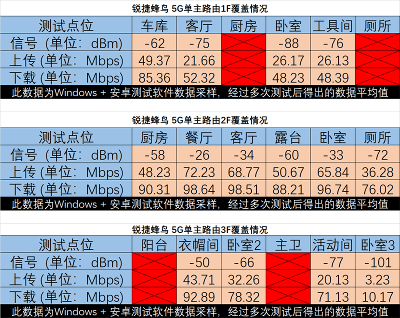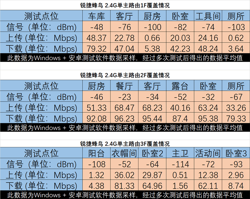 接下来就通过使用锐捷蜂鸟单路由器2.4G模式下,每个楼层的网络覆盖以及流量传输情况。