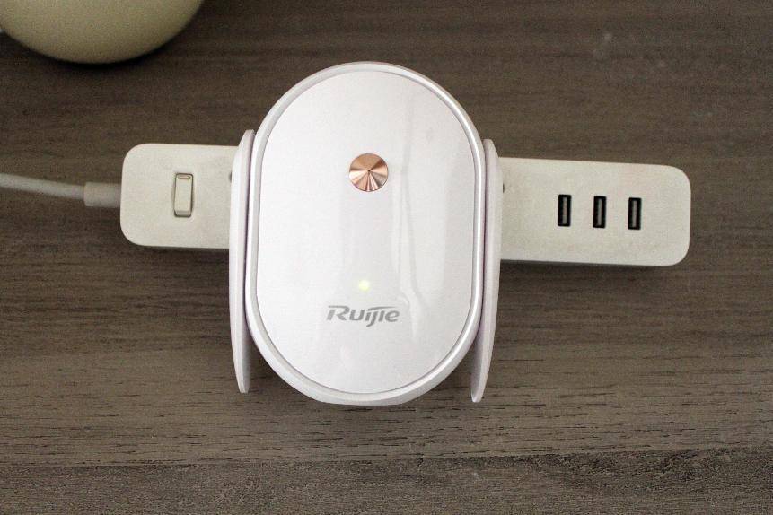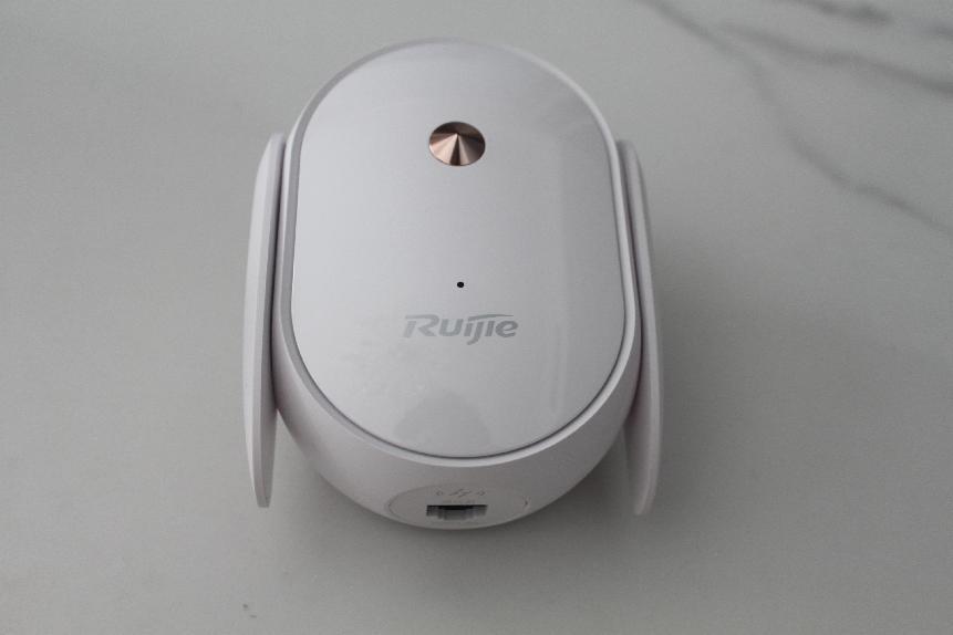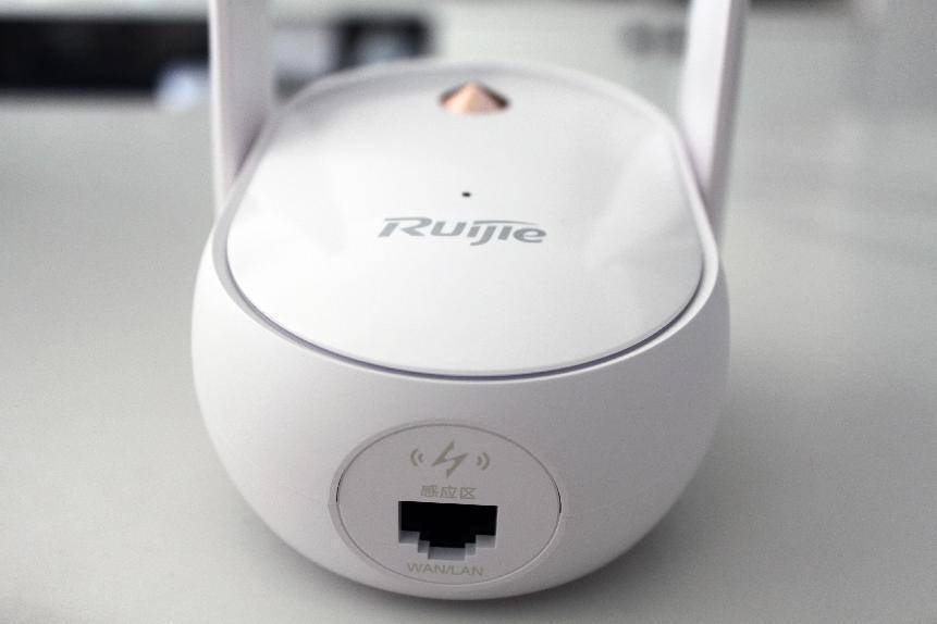 锐捷蜂鸟路由套装的子路由采用了小蜂鸟的造型,加上白色的造型,颜值也很高,在子路由的机身上可以看到品牌的logo和指示灯。