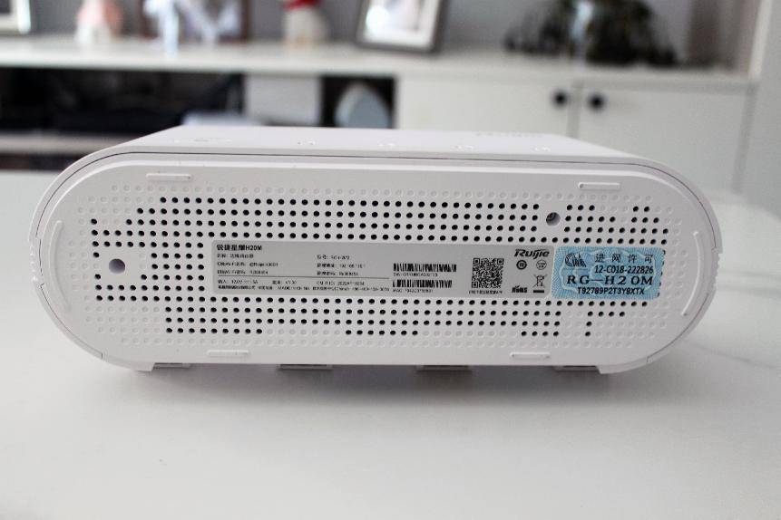 在母路由机身的底部设计了针孔状的散热孔,可以保证路由器在工作时良好的散热,从而保证路由器性能的稳定性。在底部也可以看到产品的参数标签,可以对路由器的各项性能参数进行一个了解。