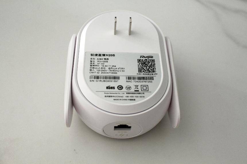 子路由采用了直插的供电方式,直接把子路由插入插座上即可。在背面的性能标签上,也可以看到子路由的一些性能参数。