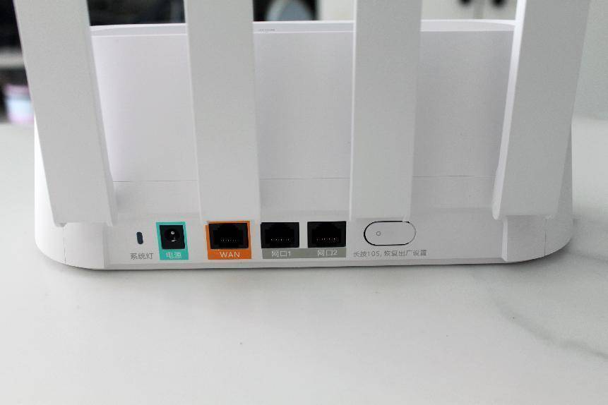 母路由机身背面设计了一个DC电源接口、一个WAN网口、两个LAN网口和路由器的重置键。三个网口的设计,也可以满足有线组建家庭网络的需求。