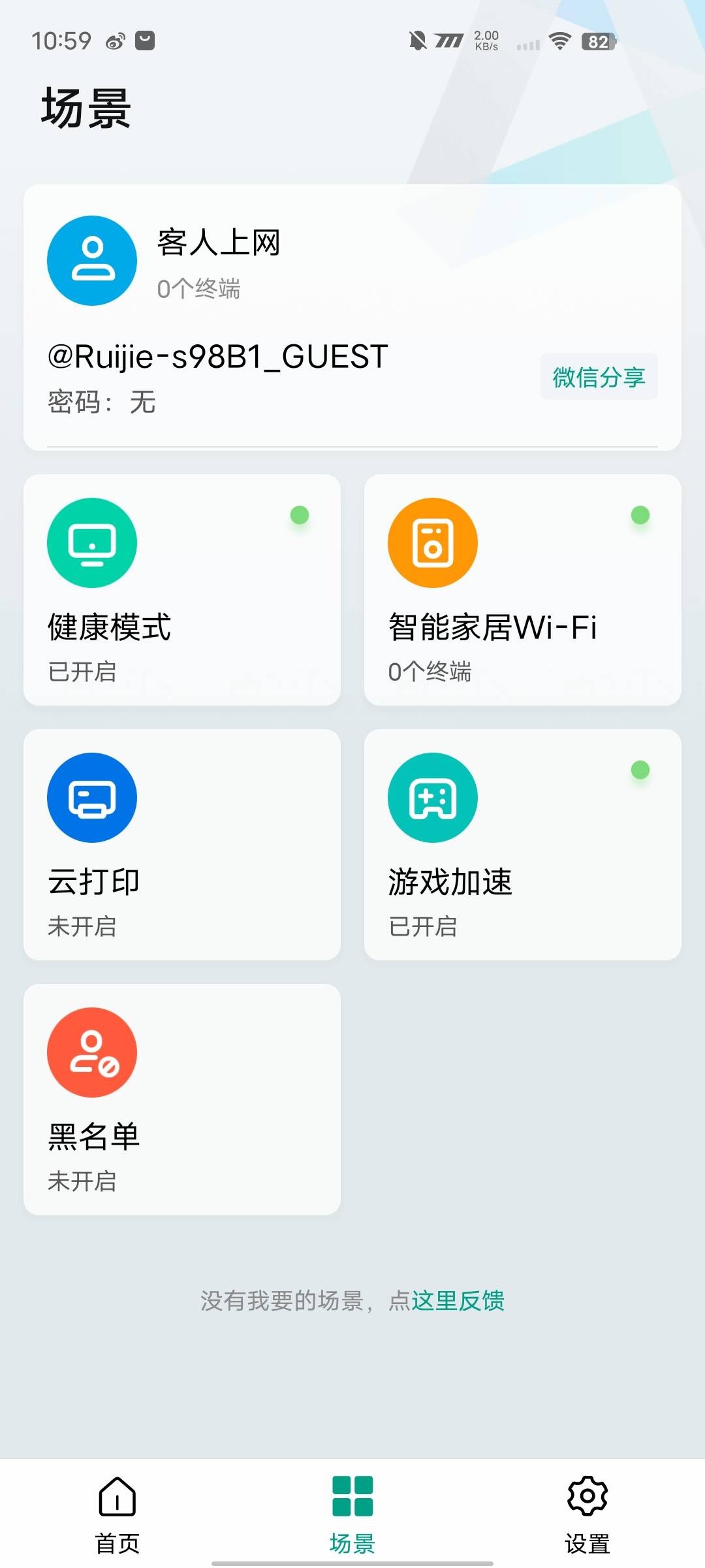 在锐捷星耀APP中,还有很多贴心的小功能设置,为了防止路由辐射对家人的硬性,尤其是有孩子的家庭,可以在健康模式中自定义路由器关闭和开启时间和辐射关闭时间。对于智能家居对2.4GWiFi的需求,可以在APP中开始智能家居网络。对于使用WiFi进行游戏,可以在APP中开启游戏加速功能。对于有客人来访,可以为他开启专属的网络。APP中这些小功能的设置,真的是太贴心了。