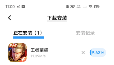 使用WiFi网络进行大型手游的下载,可以看到下载速度可以达到11MB/S左右,而且速度比较稳定,这样在短时间内就可以完成大型手游的下载。