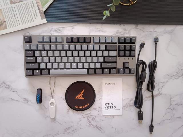 杜伽机械键盘K320采用键线分离设计,标配A to C和C to C的连接线,覆盖台式机和轻薄本等电子设备接口,考虑比较周全。