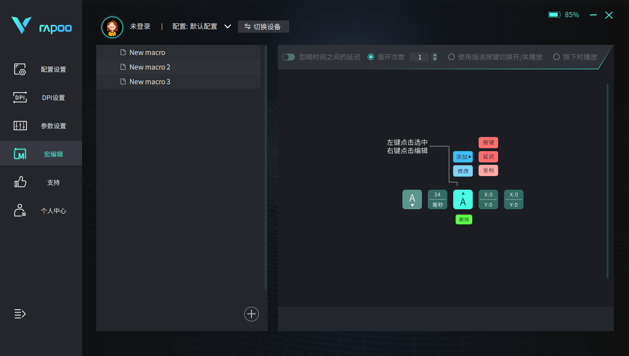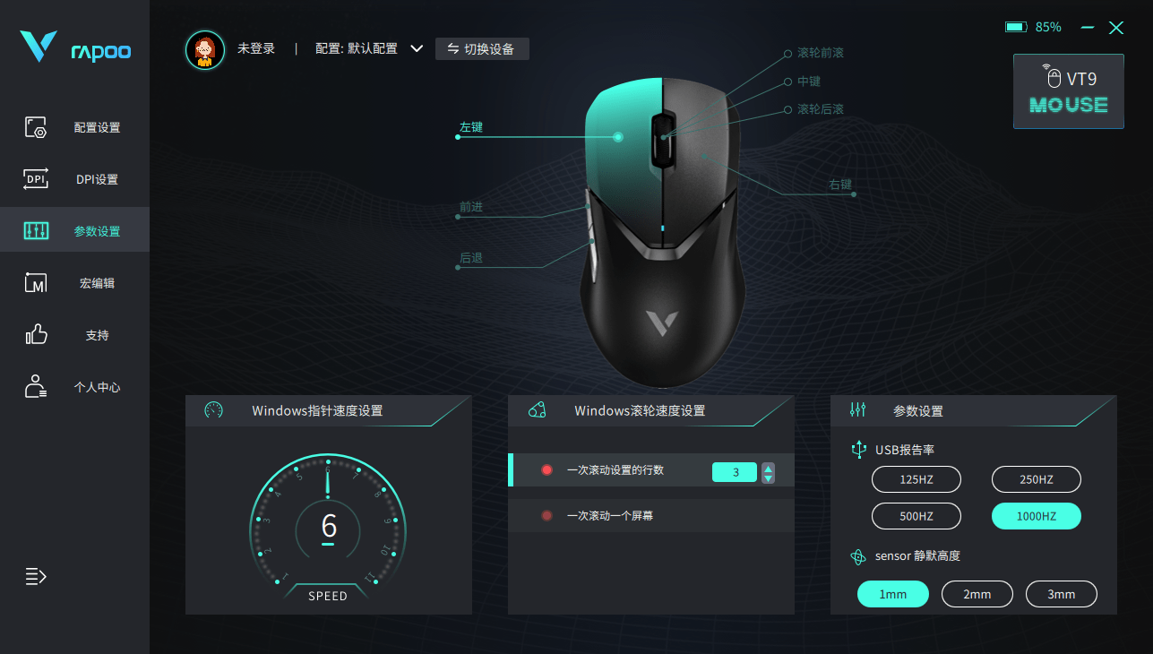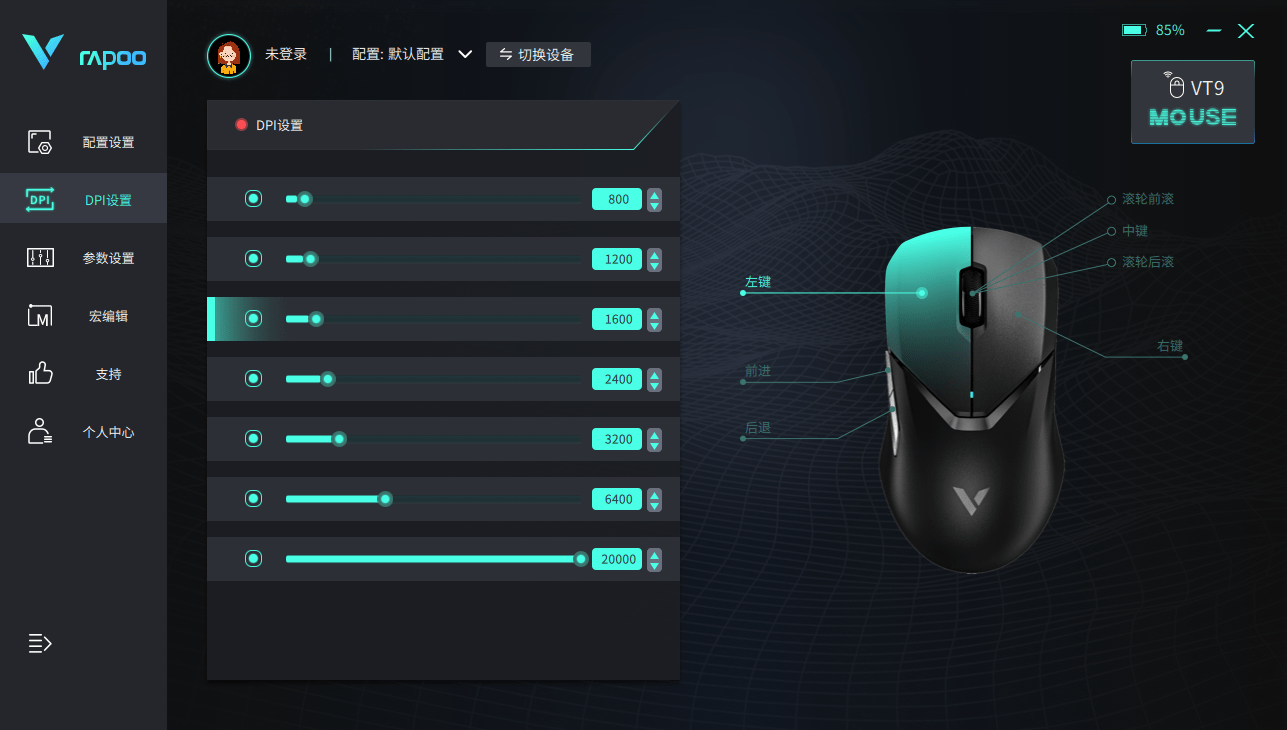 雷柏双模游戏鼠标VT9支持多组板载存储,7键可编程。通过驱动软件可以进行DPI、参数、宏编辑等多种自定义设置,分配7个按键的功能,并进行储存,进而满足不同类型游戏的设置需求。