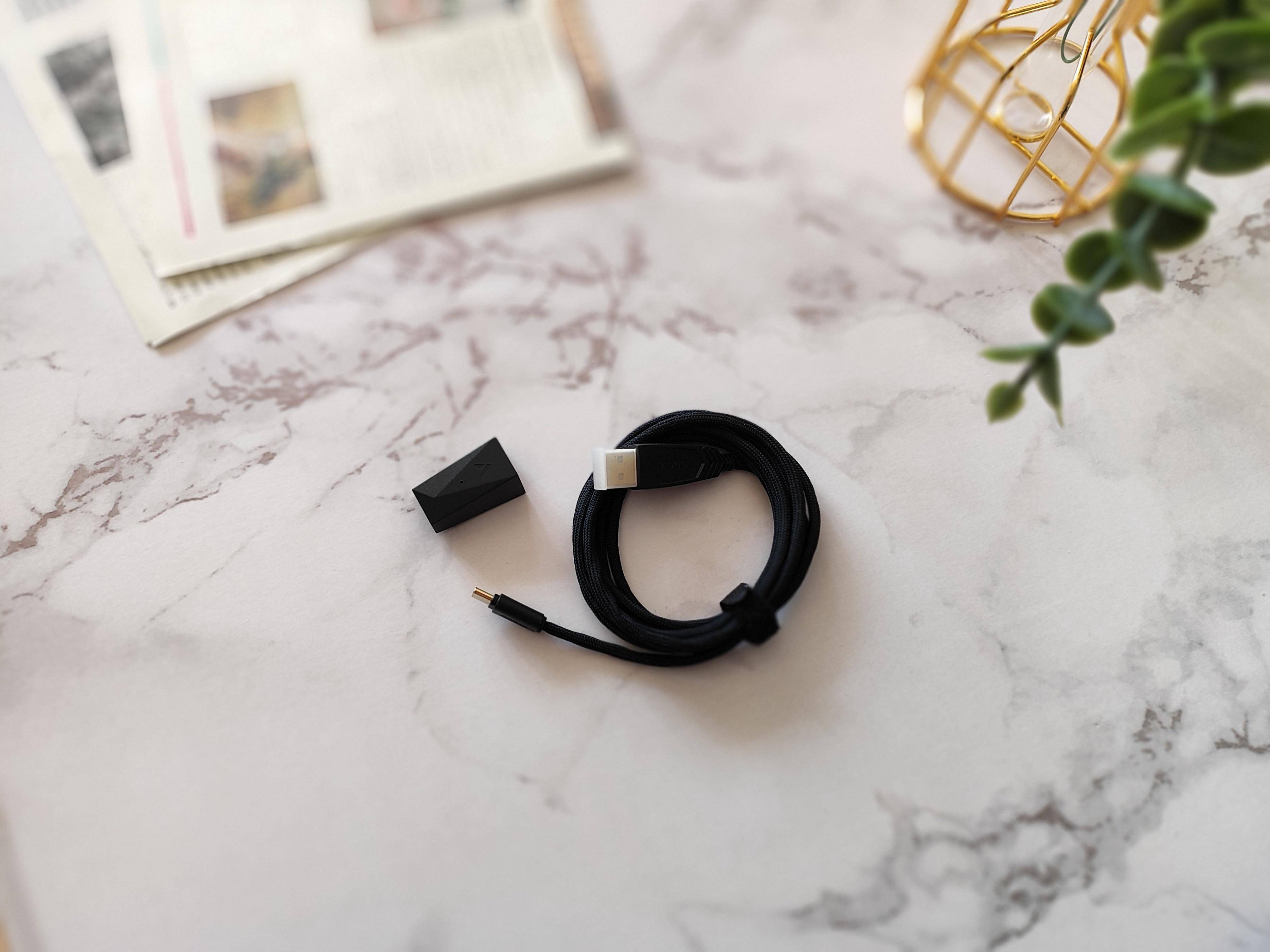 雷柏双模游戏鼠标VT9具有1.8米伞绳材质的电源数据线,重量比较轻,柔软牢固,减小摩擦,鼠标移动更轻松自如。USB转接器放置桌面上,稳固不滑,有效减少周围信道干扰,其采用镀金接口,保持传输稳定,能带来更好的无线体验。