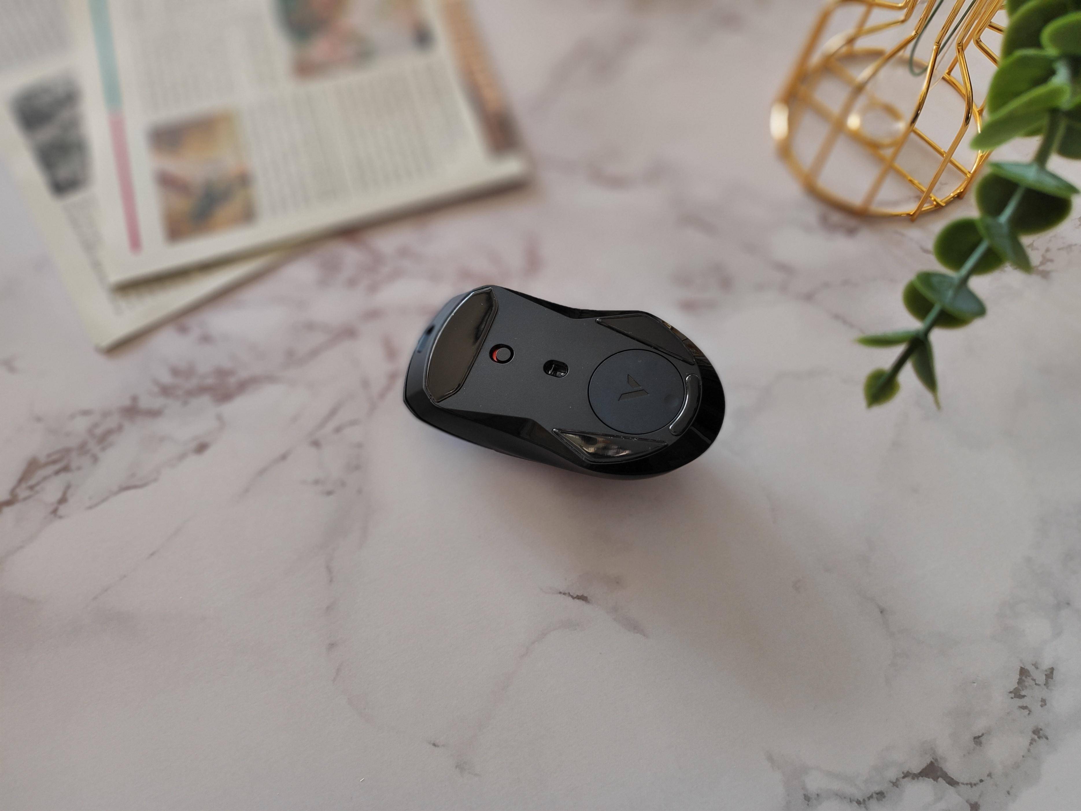 雷柏双模游戏鼠标VT9底面设有电源开关和传感器,同时有四段式特氟龙脚垫,低摩擦耐磨的特性使鼠标移动快速顺滑。