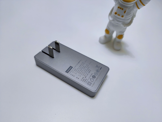 这款联想饼干适配器主打轻薄形态,大小比银行卡还要小一点,与传统厚重的充电器相比,可以说是相当小巧了,不管是放在衣服口袋里还是箱包里,都完全不占地方。