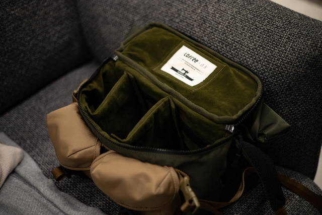 再来看今天要讲的第二款产品,洛斐遍野相机包。这是一款男女皆宜的相机包,自带复古感。Lofree这款相机包是与清友联名产出,在包包的材质方面选择了可再生材料,不仅防水还相当结实。