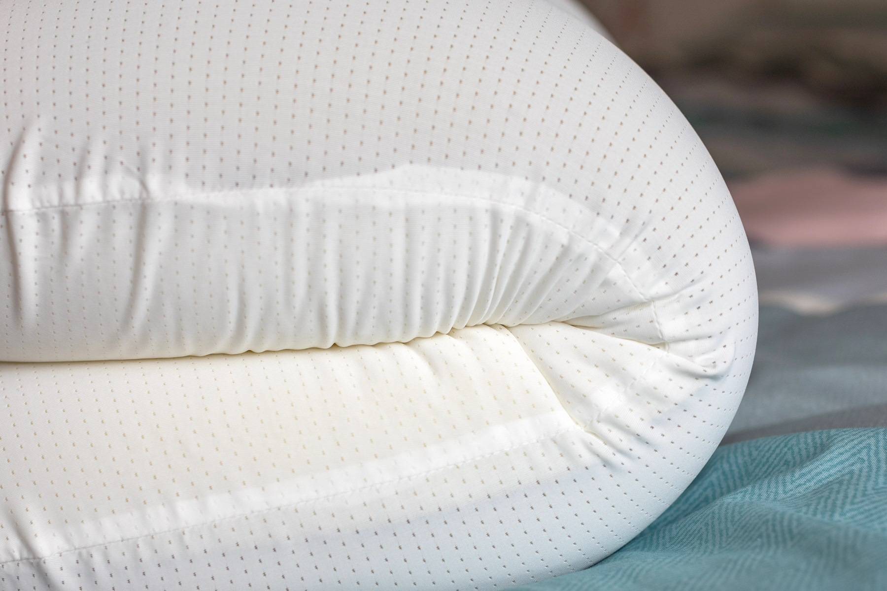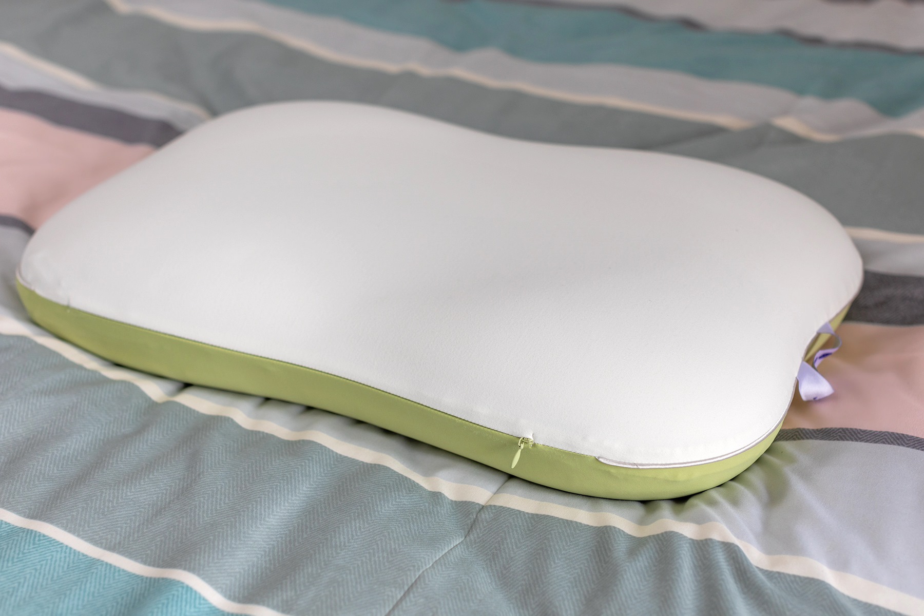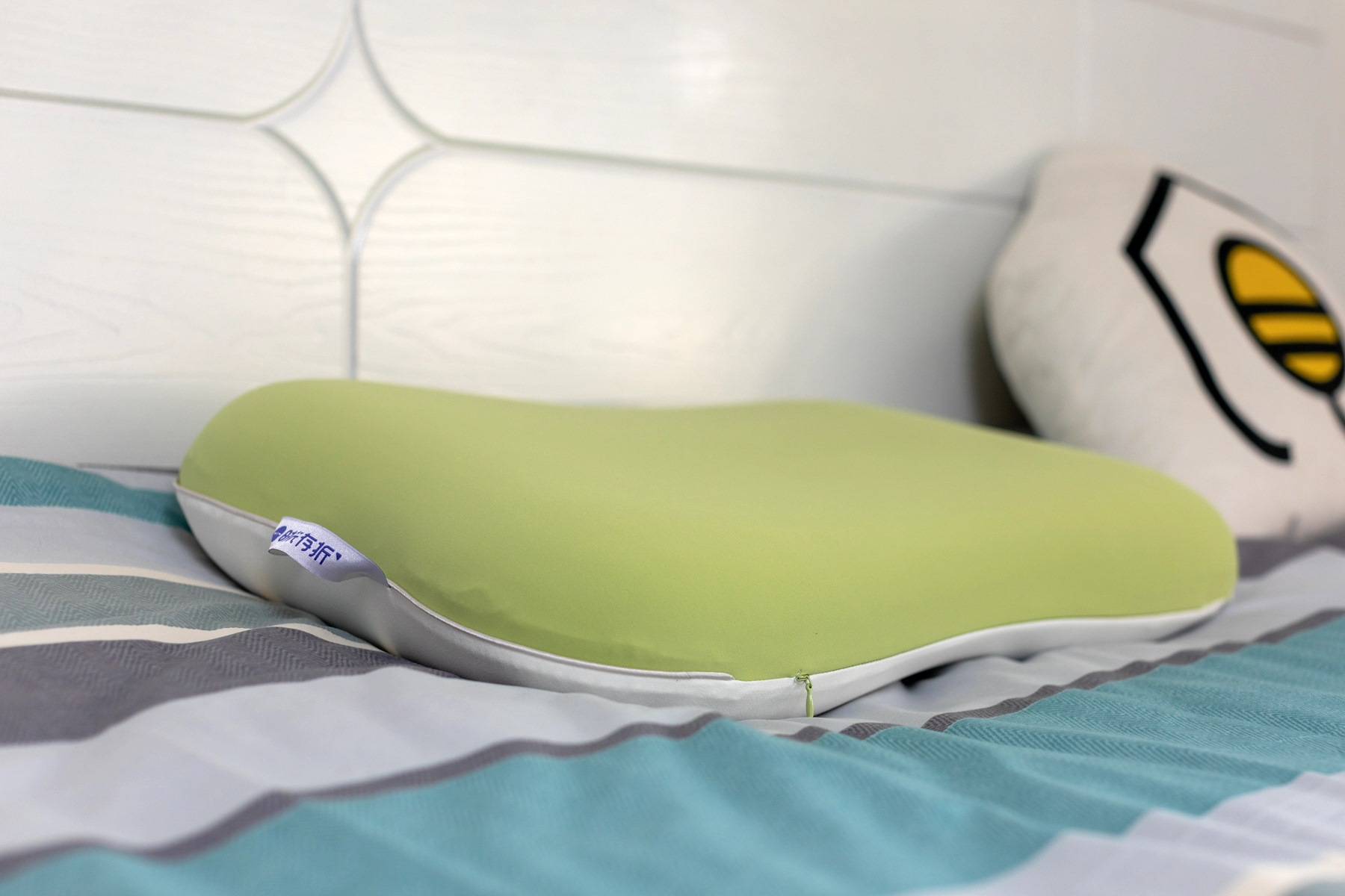 枕头的包装是个大纸盒,内部还有密封袋保护,看上去就很高档。另外,这款枕头还采用了双面枕套设计,绿色面采用了凉感面料触感冰凉,适合春夏天使用;而白色面为温感面料,适合秋冬天使用。这样贴心的设计,一年四季都可以享受舒适睡眠了。