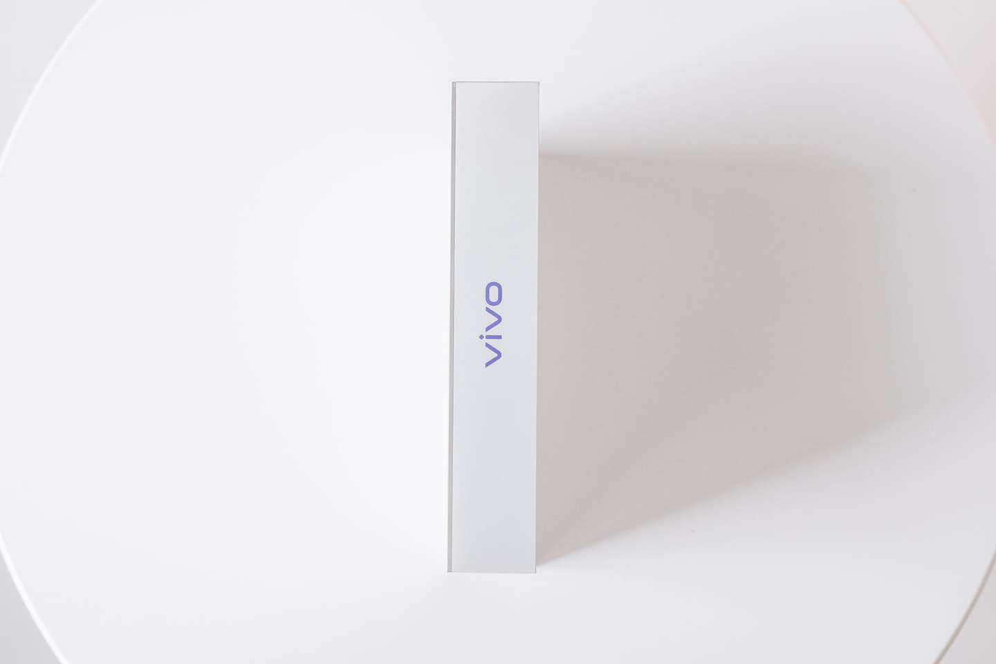 首先看这个盒子,侧面中心印着vivo非常具有设计感的Logo,虽然是两千元档的手机,但光从侧面就有一种高级感,仔细观察Logo上侧和盒子边缘还有一条反光涂料带,可以说设计是非常有心了。