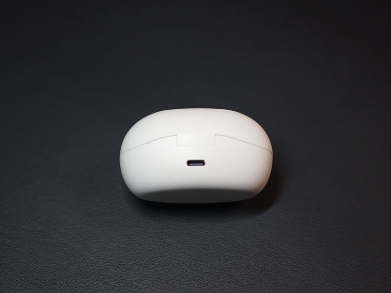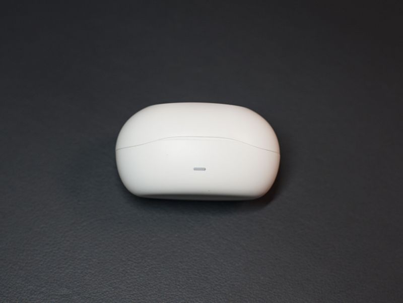 本次到手的颜色的是温润如玉的白色,看着既不妖艳也不普通。握在手上也不感觉冰冷,非常的舒服。机身的正面有一个小的led指示灯,可以从这个指示灯里的闪烁状态来了解知道这款耳机的具体情况