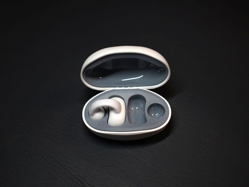 顶部的盖子打开后就是,本次真正的主角,耳夹的耳机本机了。也是纯白色的,没有一点污垢,戴眼镜也不影响佩戴,创新无感佩戴设计,不妨碍戴眼镜。高清通话就跟面对面一样畅聊双麦克风阵列波束成形,准确拾取语音,滤除噪音干扰;加持的降噪算法大幅消噪;身处闹市也能清晰通话。
