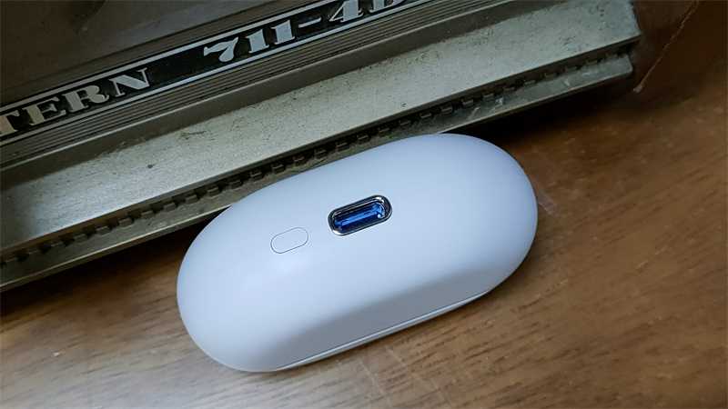 为了不影响整体的美观度,泥炭Capsule3 Pro与很多耳机一样将充电口设计于收纳仓底部,不过与其它耳机稍有不同的是,泥炭收纳仓底部比别人多了一枚用于快速初始化TWS耳机状态的复位按钮,它能够将信号分割的两枚耳机回仓后快速匹配回来。