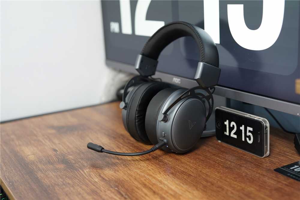 雷柏VH800双模游戏耳机采用深空灰的主色调设计,搭配黑色的耳罩和内侧头梁护垫,整体的配色方案还是很养眼,耳机整体重量大约为340g,拿在手里的感觉中规中矩,不是很轻但也不能说很沉,耳机采用蓝牙、无线双模方式使用,无拘无束的感觉挺好。