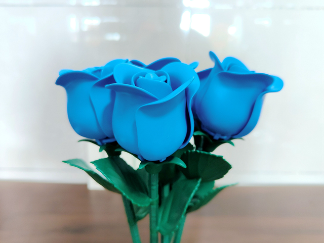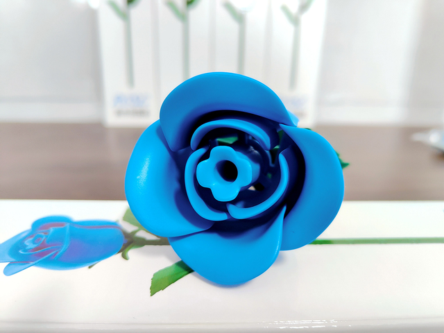 在颜色的选择上,此次选择了蓝色妖姬的配色。大家都知道,蓝玫瑰虽然属于玫瑰中的一种,但因为它不能自然生长,一般都是通过人工染色或培育而成,所以蓝玫瑰在玫瑰中还是十分珍贵的。而且相比传统的鲜花玫瑰的短暂留存,这款积木玫瑰的确称得上是一款永恒之花永不凋落的玫瑰。
