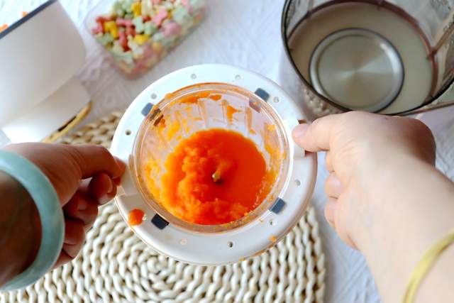 20分钟后,细腻可口的胡萝卜泥就做好了。做完看下辅食机内壁不会染色,好清洗。