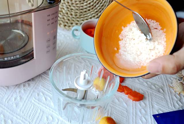 当了爸妈以后什么都想给宝宝最好的,总担心买的米糊等辅食吃这不安全,自己制作,从食材到加工,每一步都干净、卫生且健康,这样宝宝吃的每一口都是真正的0添加,非常健康。今天就用蓝宝婴儿辅食机来做个米糊,将若干大米洗净,加入杯子中,选择“米糊”功能,一键启动。